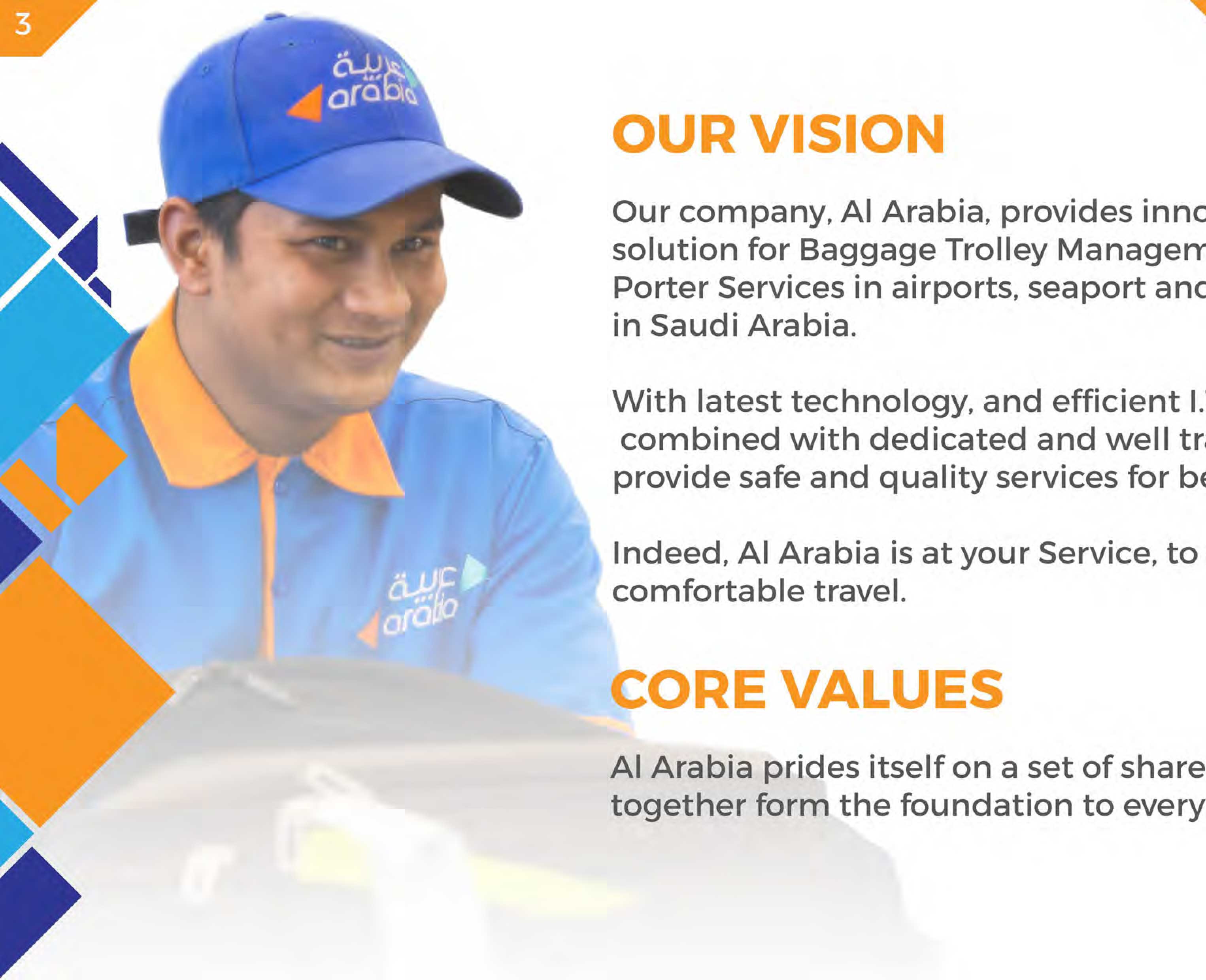 Al Arabia is a brand of Ground Handling Logistics. It provides innovative solution for Baggage Trolley Management and Porter Services in airports, seaport and train station in Saudi Arabia.